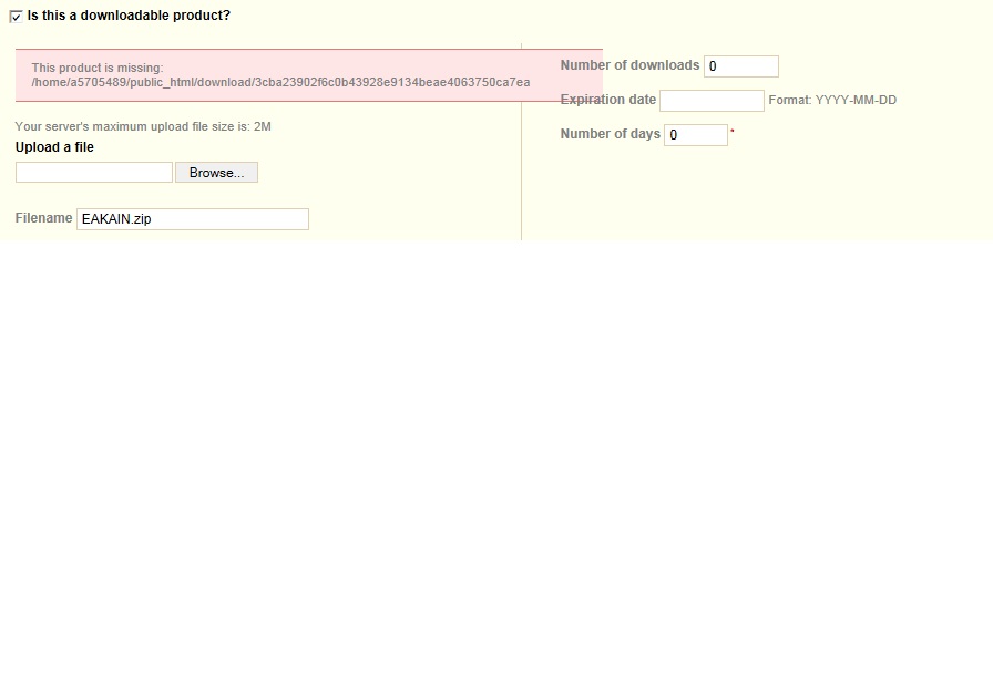 phrasespot Posted August 7, 2011 Share Posted August 7, 2011 What do you mean by I cannot upload any files using the "Browse" function? Do you get an error message? Check you folder permissions. A workaround is: you can rename EAKAIN.zip to 3cba23902f6c0b43928e9134beae4063750ca7ea (from the error message and without the extension .zip) and FTP to /download/ folder, but obviously would be better to solve the problem if you have many downloadable products. Link to comment Share on other sites More sharing options...