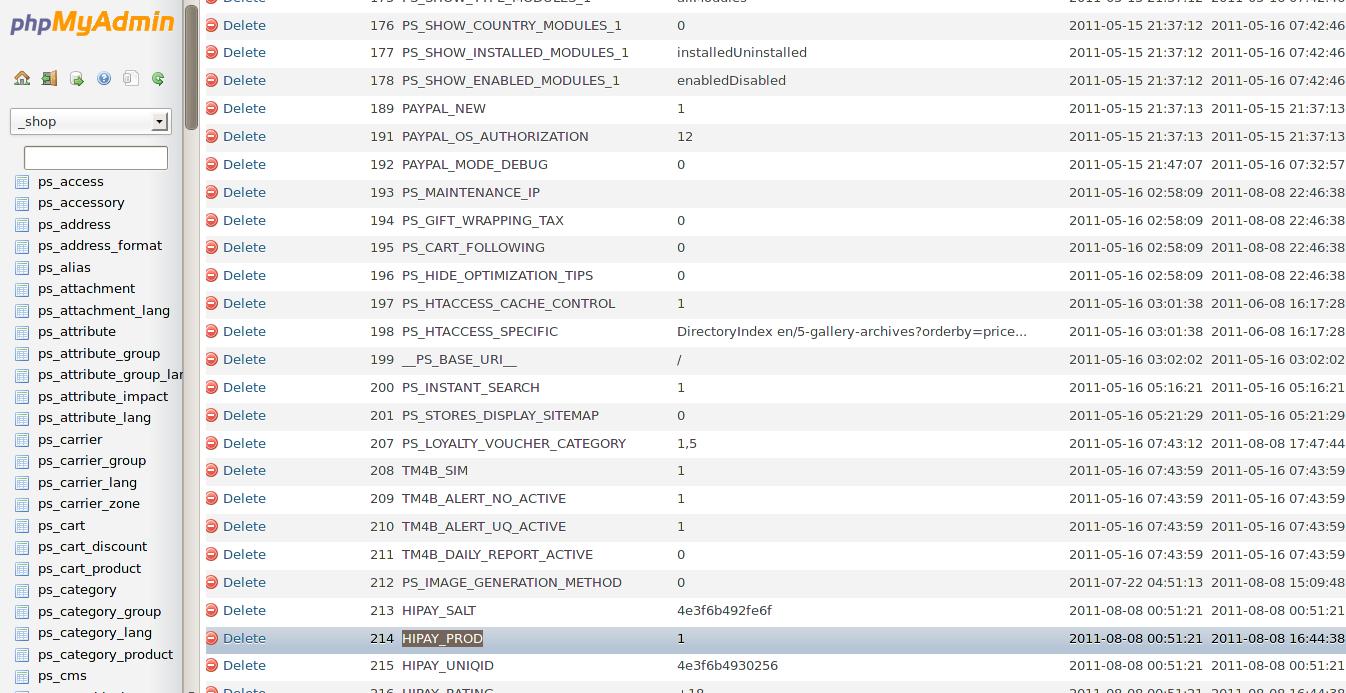 daki22 Posted November 25, 2012 Share Posted November 25, 2012 After 3 days of persistence, I believe I've finally gotten the module working. It turns out it was indeed a fault of the module itself. Thanks to the help of affect on the #prestashop IRC channel via Freenode. Here's a copy of our IRC conversation, since I don't think I could really properly format the entire issue here: Spoiler So basically, the simple fix is to open your prestashop database, select the ps_configuration table, and find the row with the name "HIPAY_PROD" For me, the value field was completely blank. You need to change the value field to "1" If you're using phpMyAdmin, you may need to delete the row, the re-insert it using the same information (excluding the value field). So afterwards it should look something like this: This is working i had done this with version 1.1 i think that someone need to upload this fixed module that there is no need for php thank you man!!! Link to comment Share on other sites More sharing options...