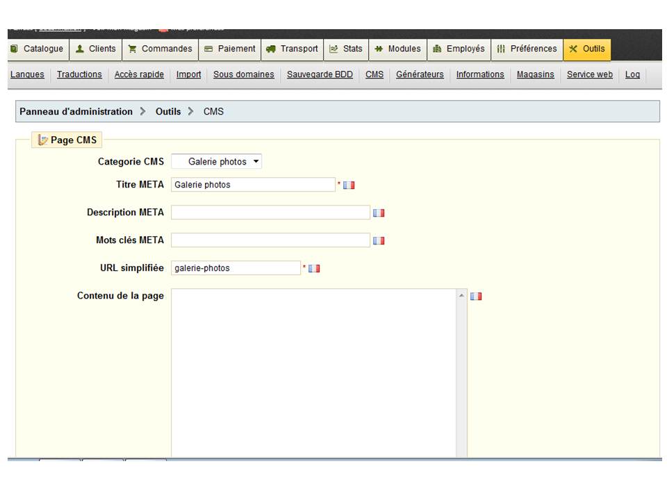 daniel3000 Posted August 9, 2011 Share Posted August 9, 2011 Re bonjour, Là c'est bon. Mets juste le méta (titres et textes qui seront lus et retranscrits par les moteurs de recherche). puis tout se passe dans le carré blanc dans lequel tu peux placer ton contenu: - Soit en l'utilisant façon "word", en direct ou alors par copier coller. - Soit en écrivant ou collant un code html. (là tu peux même aller jusqu'à des animations.) La seule chose qui m'étonne est de ne pas voir en haut de ton cadre blanc la barre d'outils qui est présente sur le mien (v1.3.7.). Bon courage Daniel Link to comment Share on other sites More sharing options...