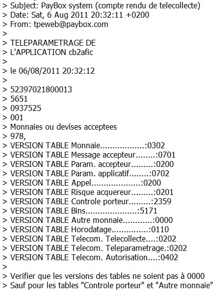 Concernant la configuration de la carte bleu , je reçois constamment un message de paybox