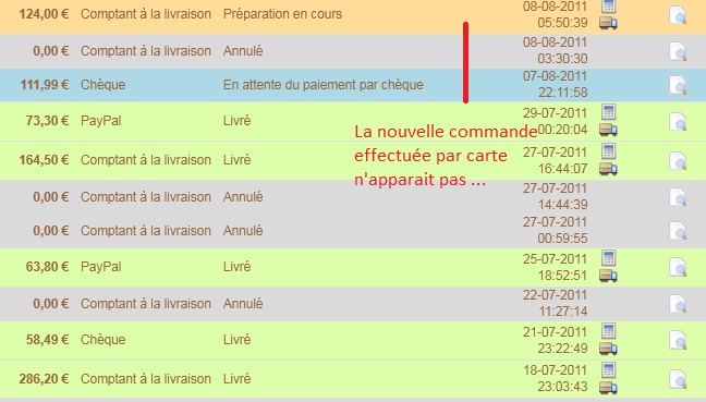 du back office ( voir image jointe) la commande par carte bleue n'apparait pas