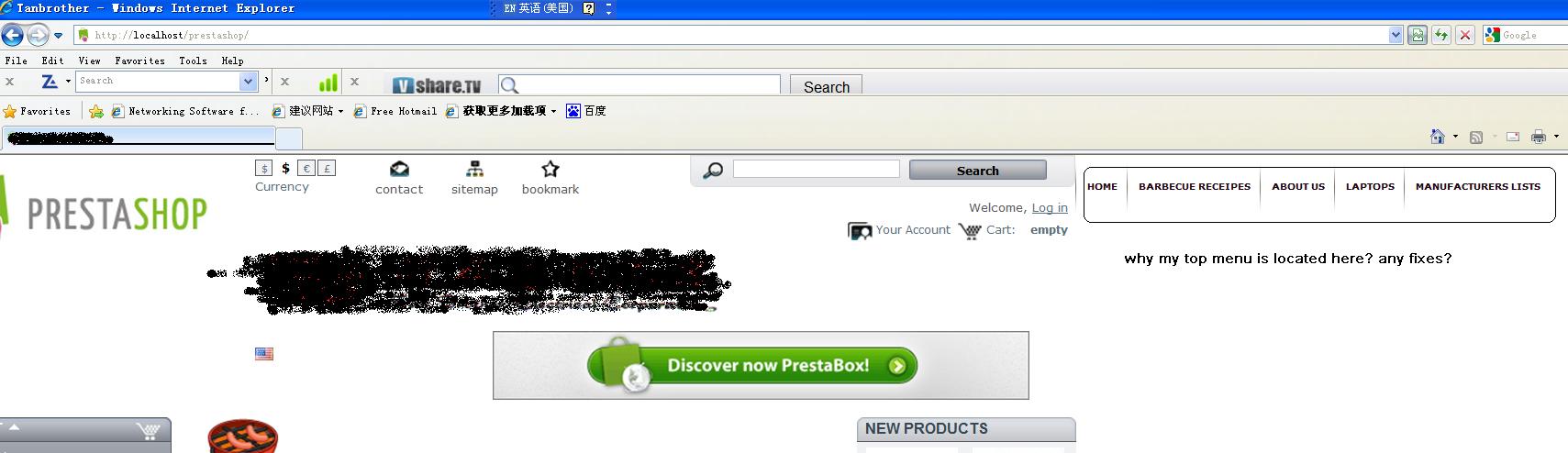 howardq Posted August 17, 2011 Share Posted August 17, 2011 Hi, I have installed Prestashop 1.4.4.0 and trying to configure Julien Breux's menu 2.71 as top menu of my site which is running horizontally across. I intend to have it configured at top menu just below the company logo, and have hooked into "header of pages" block, but could not get it right after many attempts. If you refer to my attached screen shot, it is some how located at top right corner. Seeking your help. Appreciated. Hwd Link to comment Share on other sites More sharing options...
