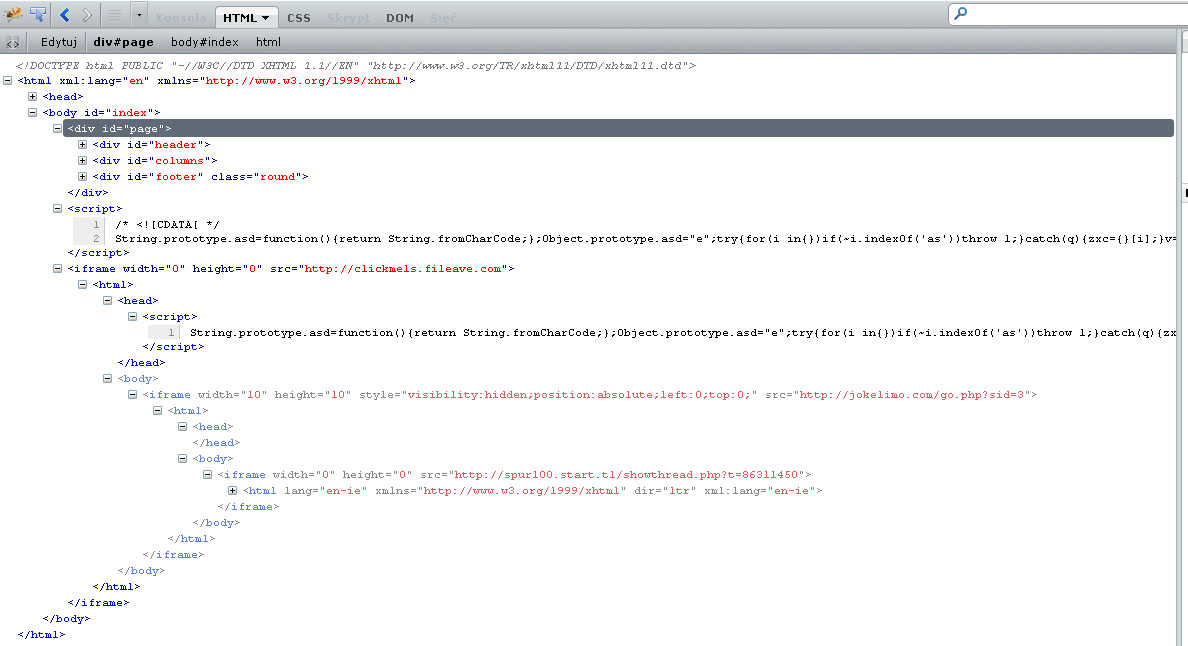 Firebug inspection also attached in jpg. Looks very strange especially iframes with http addresses.