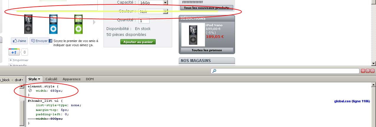 yvesbj Posted August 24, 2011 Share Posted August 24, 2011 Bonjour, Dans la page produit, au dessus des miniatures, une zone (en jaune sur ma capture) me pose des petits problèmes. En gros j'aimerais pouvoir agrandir cette zone en largeur mais je ne sais pas ou intervenir pour le faire. Pourquoi ? Parce que j'ai agrandi mes miniatures de 80x80px avant à 98x98px maintenant et la dernière image passe toujours à la ligne. Apparemment, ce serait à cause de cette zone qui ne serait pas modifiable en CSS. Cela fais déjà bien 10 heures depuis hier que je suis dessus, j'ai fouillé le forum et tout mais rien n'y fais. Je vous en supplie, je suis épuisé, est-ce que vous pouvez m'aider s'il-vous-plais ? Link to comment Share on other sites More sharing options...