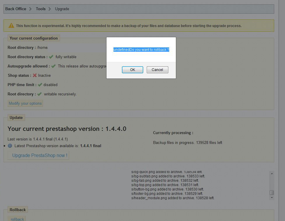 4. Allow the upgrade process done completely by prestashop, pending the outcome.