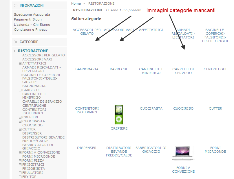merlino Posted September 12, 2011 Author Share Posted September 12, 2011 Si in performance dovresti abilitare la forzatura della ricompilazione. Ho ricompilato, ho rigenerato il file .htaccess ed ho copiato la vecchia /img nella nuova... le immagini comunque non compaiono :-( Vi allego la nuova struttura folder che ho nella mia /img. Ho notato che immagini delle categorie sono immagazzinate nella folder /img/c con nome "category_IDcat.jpg" grazie per i vs suggerimenti Link to comment Share on other sites More sharing options...