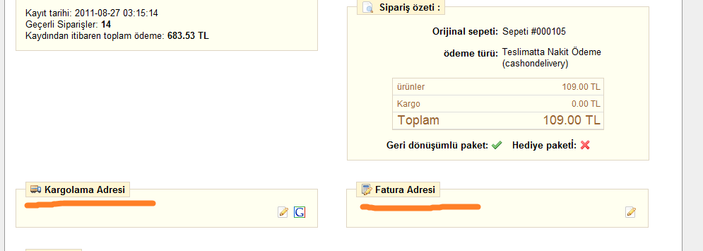 looserjack Posted September 5, 2011 Author Share Posted September 5, 2011 Burada hiç fatura adresi görünmediki mahmut ben de yeni farkettim , zaten deneme siparişlerini kendim yaptım , yani sitemi daha yayına açamadım eksikler olduğu için. burası hep boştu , fatura ve kargolama adresi kısmı. Link to comment Share on other sites More sharing options...