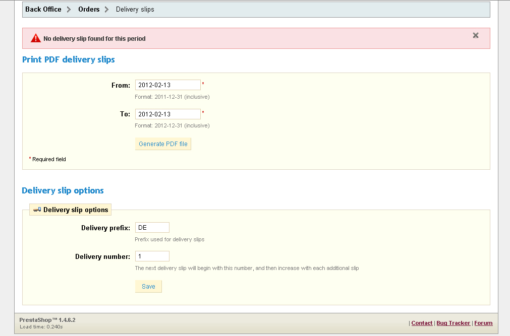 mowax Posted February 13, 2012 Share Posted February 13, 2012 Hi, I'm using 1.4.6.2 and I cannot generate a delivery slip for an order which status is 'Payment accepted'. When I try to generate them for any date range, it says 'No delivery slip found for this period.' (see attachment 1). And in the order detail page, it says 'No delivery slip' (see attachment 2). Do I need to purchase a module just in order to print a delivery slip in these circumstances? Link to comment Share on other sites More sharing options...