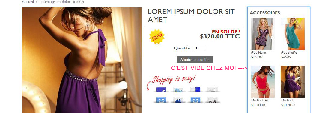 Nérim Posted September 27, 2011 Share Posted September 27, 2011 Idem pas de réponse à mon email, j'ai pris le 1colonne et j'ai ce problème au cas ou Up Your Com aurait la réponse, j'ai un emplacement vide par rapport à la démo. (voir image jointe) Mise à part ce détail tout fonctionne et la doc d'installation est bonne avec une image qui nous indique la position des modules, cette dernière est trop rare d'ailleurs chez d'autres prestataires... A noter que le module home featured possède un oubli dans le code permettant d'afficher les traductions dans les autres langues Ligne 47 du homefeatured.tpl <div class="left_price"> {if isset($product.on_sale) && $product.on_sale && isset($product.show_price) && $product.show_price && !$PS_CATALOG_MODE}<span class="on_sale">{l s='On sale!'}</span> {elseif isset($product.reduction) && $product.reduction && isset($product.show_price) && $product.show_price && !$PS_CATALOG_MODE}<span class="discount">{l s='Reduced price!'}</span>{/if} {if isset($product.online_only) && $product.online_only}<span class="online_only">{l s='Online only!'}</span>{/if} Remplacer par <div class="left_price"> {if isset($product.on_sale) && $product.on_sale && isset($product.show_price) && $product.show_price && !$PS_CATALOG_MODE}<span class="on_sale">{l s='On sale!' mod='homefeatured'}</span> {elseif isset($product.reduction) && $product.reduction && isset($product.show_price) && $product.show_price && !$PS_CATALOG_MODE} <span class="discount">{l s='Reduced price' mod='homefeatured'}</span>{/if} {if isset($product.online_only) && $product.online_only}<span class="online_only">{l s='Online only!' mod='homefeatured'}</span>{/if} Si cela peu être utile pour quelqu'un... Link to comment Share on other sites More sharing options...