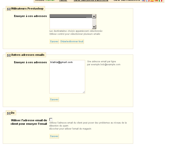 Vous pouvez aussi choisir si l'email est envoyé depuis l'adresse email du client ou celle du magasin.
