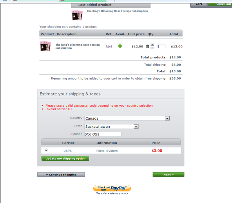 kbrmin Posted September 23, 2011 Share Posted September 23, 2011 I have set my shipping so that foreign countries outside of default country, USA, have different rates. But when I click on a different country in the shopping cart, the shipping stays the same as the USA shipping. Why is the different pricing not kicking in? Do I need to add another carrier for foreign shipping or something? I added different rates for different countries under "Fees by carrier, geographical zone, and ranges" I'll attach a picture of when I choose another country: the shipping stays the same as USA shipping (should be $8.00). Link to comment Share on other sites More sharing options...