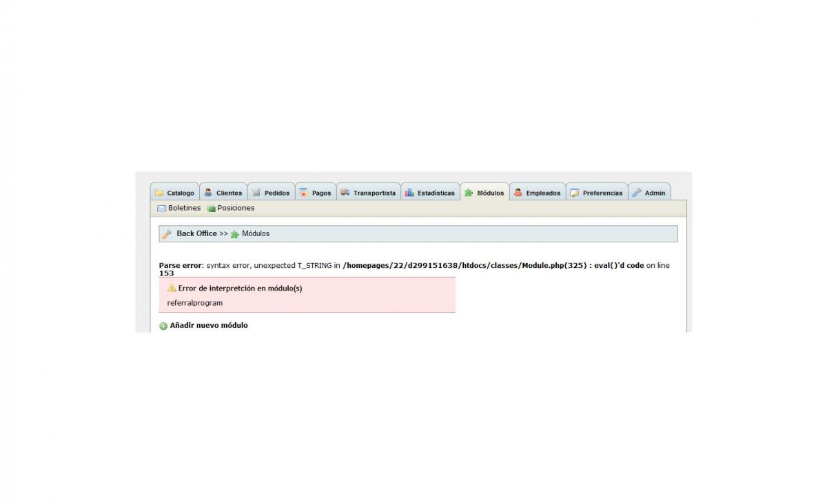 ghostmind Posted September 29, 2011 Share Posted September 29, 2011 Chicos, he estado mirando en foros y demás y no se como solucionar este problema. Os pongo captura. Me sale siempre y no me deja instalar ningun modulo. El codigo perteneciente a ese error ronda por esta sección: // Check if already register $result = Db::getInstance()->getRow(' SELECT hm.`id_module` FROM `'._DB_PREFIX_.'hook_module` hm, `'._DB_PREFIX_.'hook` h WHERE hm.`id_module` = '.intval($this->id).' AND h.`name` = \''.pSQL($hook_name).'\' AND h.`id_hook` = hm.`id_hook`'); if ($result) return true; Gracias! Link to comment Share on other sites More sharing options...