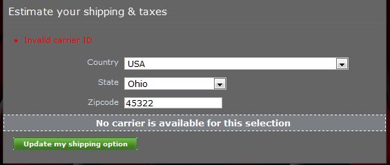 Briandh76 Posted September 29, 2011 Share Posted September 29, 2011 After getting the UPS module installed and working the shipping estimator stopped working. It says there is no carrier that ships there and it gives me an invalid carrier id error. The shipping module works fine so I'm really not sure what is going on. Any ideas? Link to comment Share on other sites More sharing options...