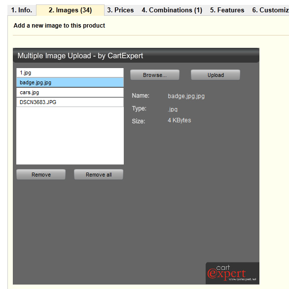 CartExpert.net Posted September 30, 2011 Share Posted September 30, 2011 New module launched by CartExpert. Uploading multiple images for Your products has never been easier. Forget about selecting images one by one: our module allows You to select multiple images at once and upload them. Click link to see full product description: http://www.cartexpert.net/back-office-modules/46-multiple-image-upload-for-ps-14.html Regards, The CartExpert Team Link to comment Share on other sites More sharing options...