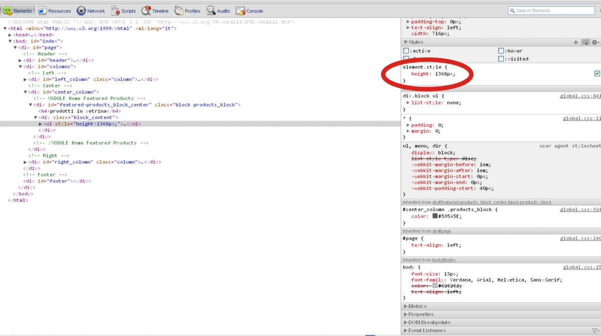 EV Network Posted October 14, 2011 Share Posted October 14, 2011 quando firebug mette la dicitura element style vuol dire che l'attributo css è in-line direttamente sul .tpl e non dentro alfoglio di stile, in fatti se guardi a sinistra dell'immagine che hai postato lattributo 'height è settato direttamente sul tag ul Link to comment Share on other sites More sharing options...