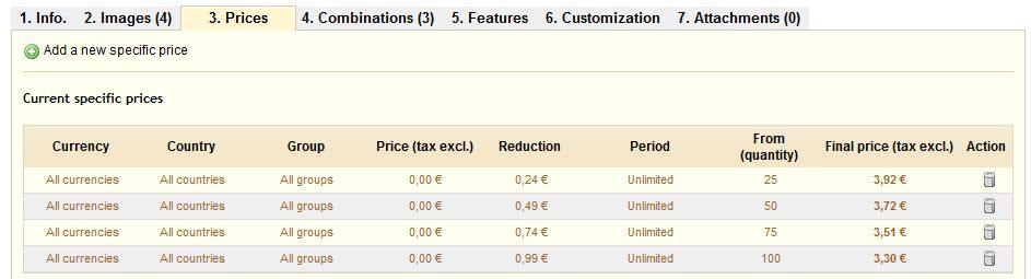 If costumers buy more of them, they get a discount (versions/attributes can be combinated).