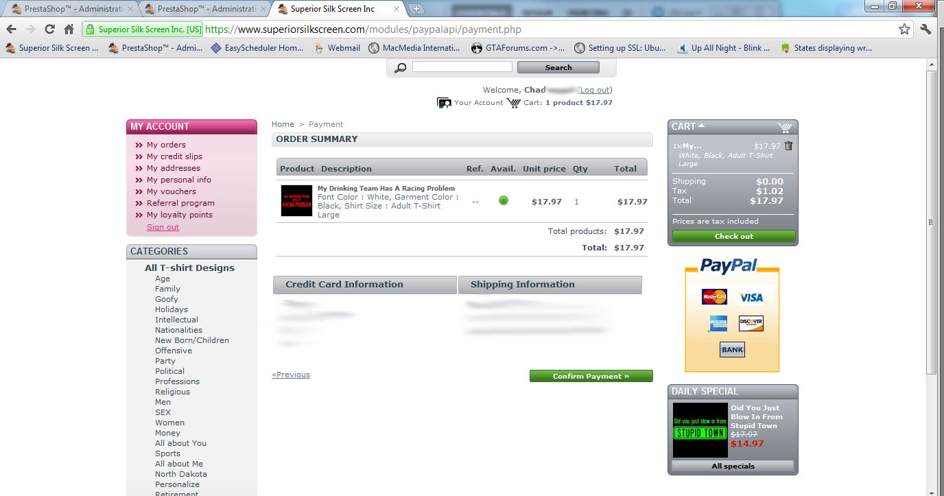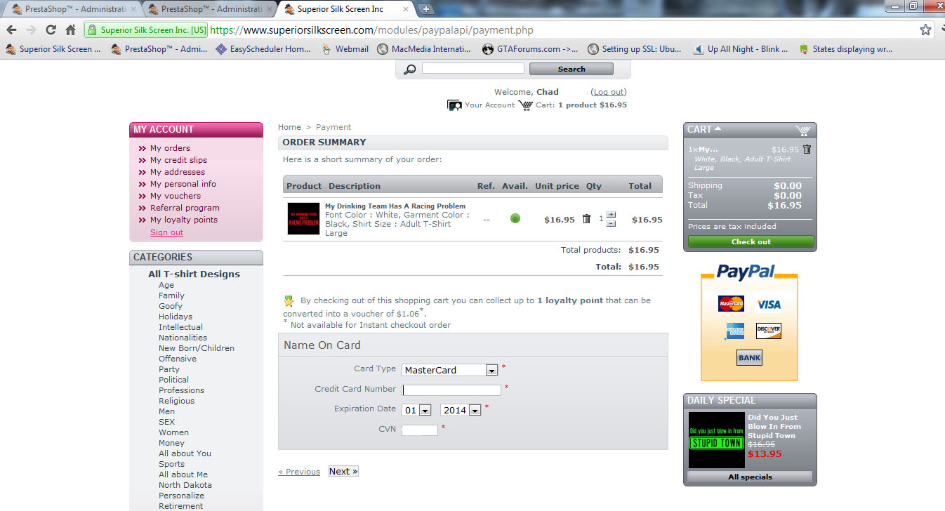 chad Posted October 5, 2011 Share Posted October 5, 2011 I have paypal api version 1.4 and since upgrading to prestashop 1.4.4.1, paypal api no longer works. After the credit card info is all entered and you click submit you get a confirmation page asking if that is what you want and you click yes and it takes you to a blank white page. No payment is every made and no order actually submitted. The 3 pictures posted are the order in which going through the checkout with the api module in order. The last one should not be a blank page My ultimate goal here is to accept credit cards right on the page without actually leaving to go to paypal's site or another 3rd party site. I realizes a payment gateway such as paypal. On my old site we ran it all through paypal api and accepted cards on the site. Actually I was able to use the paypal api 1.4 up until this latest upgrade. If anyone has any other suggestions as to how to accept cards directly on the site I would be up for them as well since may people do not like actually having to go to a 3rd party site to complete their order. Thanks Chad Link to comment Share on other sites More sharing options...