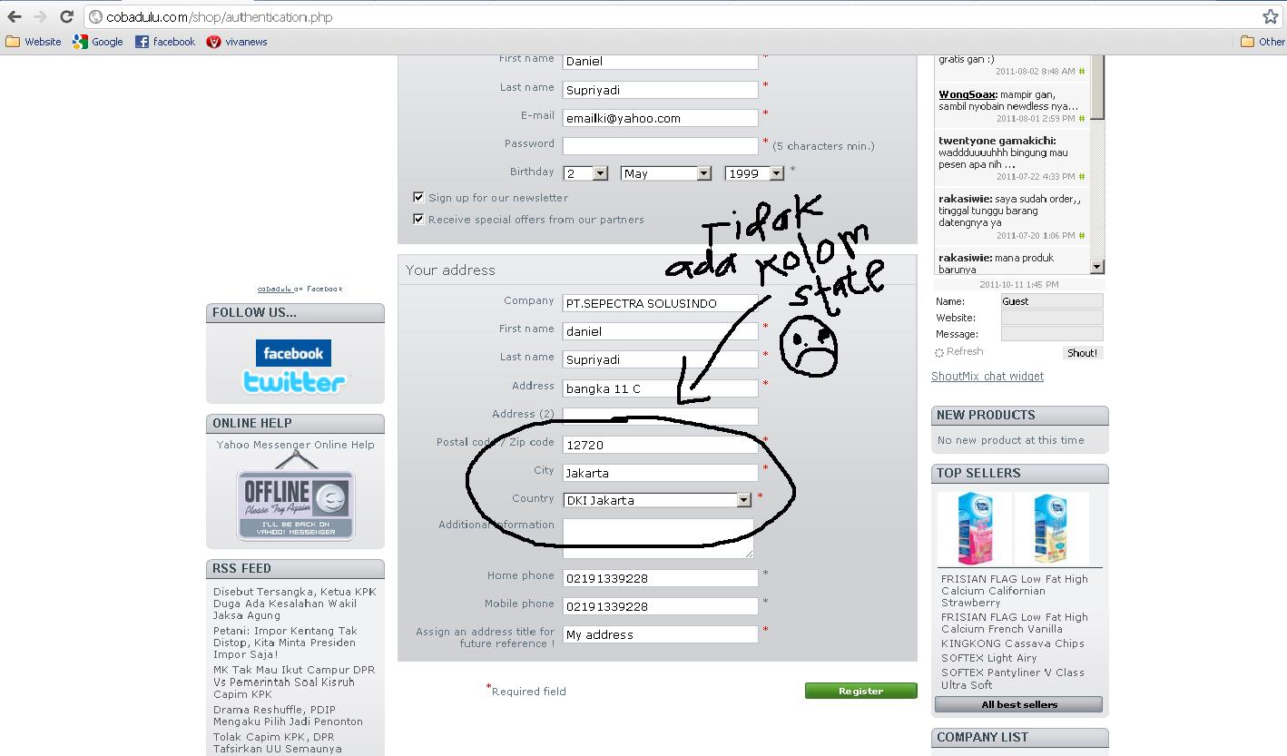 sakuragi Posted October 12, 2011 Author Share Posted October 12, 2011 @sakuragi Masalahnya yang sebenarnya di thread : [ask] terjadi masalah di pendaftaran,padahal sebelumnya tidak apa-apa Atau yang disini ? yang di sini mas gan...sama aja sih masalah nya..hanya saja saya posting lagi yg ini mohon penerahan yah mas gan.. Link to comment Share on other sites More sharing options...