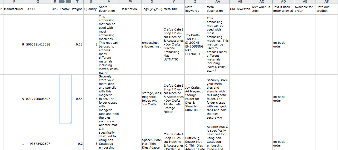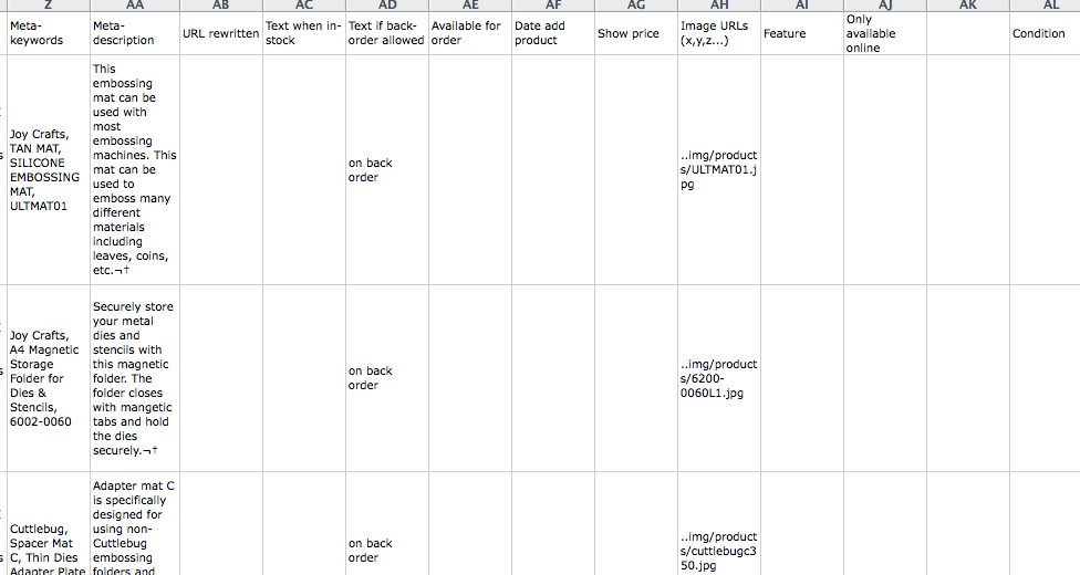tk062 Posted October 15, 2011 Author Share Posted October 15, 2011 Thanks for your reply. I've attached the screenshot of the the CSV file. For some reasons I cann't upload the csv directly into the threads. The Prestashop Version is 1.4.4.1 Any advice or suggestion is highly appreciate. Link to comment Share on other sites More sharing options...
