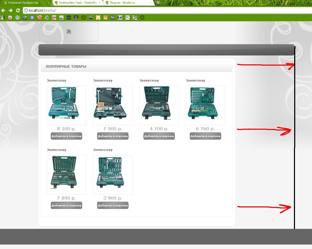 Минутку, почему width: 753px? Это, не помню уже, в alt_2 такая ширина? Ну, ладно. Принцип всё равно тот же. Только, вот, с отключением колонок не уверен, что у Вас получится. Дело в том, что, если не лазить в код, а пользоваться средствами админки, 2 боковые колонки здесь совершенно необходимы. Потому что просто запретить модулю не показываться на такой-то странице нельзя. Это можно сделать во время его переноса. Например, блок Корзины. Чтобы задать ему не показываться на Главной, переносим его в левую колонку, после этого не забываем его удалить в правой, и обратно переносим из левой в правую, добавив в нижнюю графу (куда вписываются страницы, на которых этот модуль не должен показываться) — index.php. Значит, "кроме Главной". То же самое делаем и со всеми прочими модулями. Нудное занятие... Почему говорю, что две колонки для этого необходимы? Потому что правая и левая колонки могут свободно обмениваться модулями, но попробуйте перекинуть ту же Корзину в шапку или в подвал — увидите. Я не говорю, что вообще нельзя. Подправить код и пожалуйста. Я так и делаю, когда по-другому не получается. Но модулей много, а жизнь у Вас одна. Я бы перешёл на стандартный Nº1.