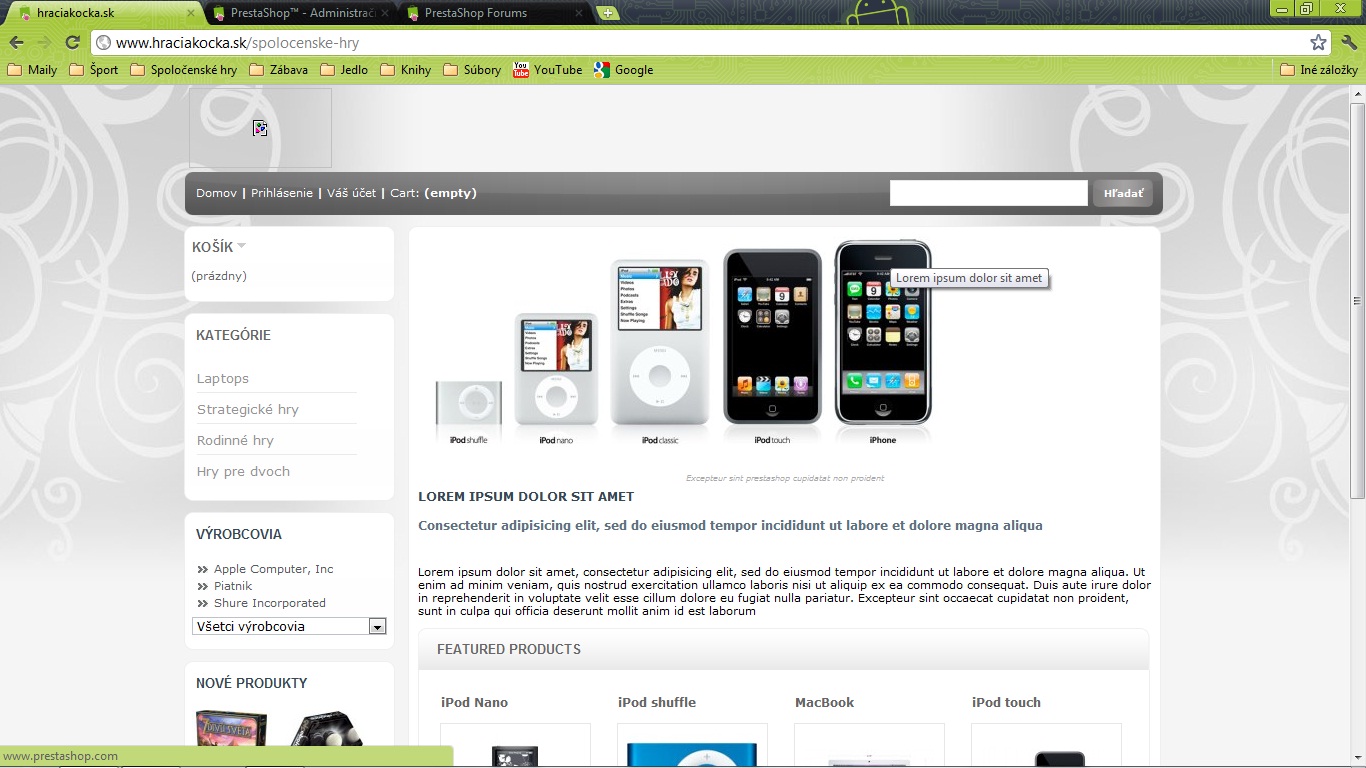 rzeznik Posted October 18, 2011 Author Share Posted October 18, 2011 Hi Think that problem is that you have this code in header.tpl of your theme <img class="logo" src="{$img_ps_dir}logo.png .... and by default if you upload image through back office it gets converted to jpg. and theme want png so no logo is shown. What you can do is to manually upload logo.png to img folder (in root/img not in root/themes/yourtheme/img) or if you have 1.4 version to change in Back Office Preferences Image Image quality to "Use PNG only if the base image is in PNG format ". hi razaro. thank you very much. You´ve got right. Now it work. Thank, again. Link to comment Share on other sites More sharing options...