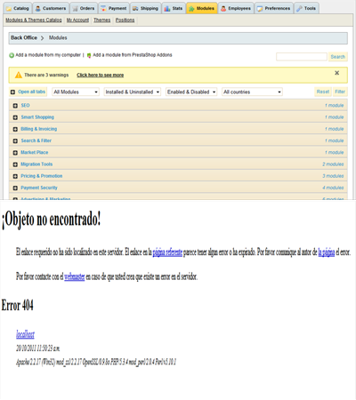 I installed PS 1.4.4.1 and I don't get access to the modules side (pic. attached). I work with xampp ... local network! Also the live edit isn't working. It works after the start up, but now .. it does not work anymore. The module access send a error 404 file. (also in the pic attached).