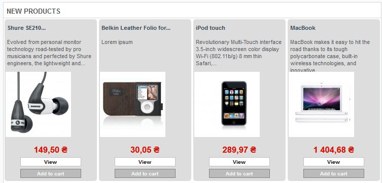 RadioMaster Posted November 7, 2011 Author Share Posted November 7, 2011 Спасибо, более менее что то вырисовываться стало. Но у меня последний вопрос, а где выставлять количество товаров в ряду. Мне нужно вместо 4 поставить 5. Link to comment Share on other sites More sharing options...