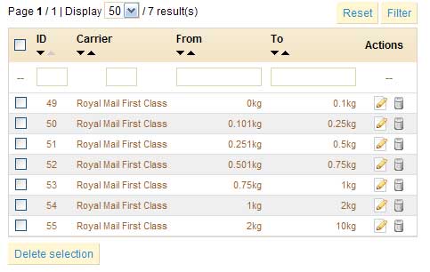 Dave L Posted November 4, 2011 Share Posted November 4, 2011 Firstly, the shipping is either weight based or price based, not both. So your price ranges will not be included in any shipping process if you have the shipping set to According to total weight. You can therefore delete the price ranges you have set up which may help any confusion later on. Secondly your weight ranges are incorrectly set up. The weight ranges are inclusive/exclusive which basically means from value 1 up to and including value 2, from but excluding value 2, up to and including value 3 etc. In your shipping you should set the ranges up like this: 0kg - .1kg .1kg - .25kg .25kg - .5kg .5kg - .75kg Regarding the zone error, make sure each of the carriers is assigned to the correct zone. Additionally, check that your Country 'United Kingdom' is assigned to your zone 'United Kingdom'. Also consider the carriers Out of Range Behaviour. The error message 'There are no carriers available that deliver to this address' will occur if the total weight of a purchase (multiple products for example) exceeds any of your weight ranges. Other than that you shouldn't have any issues with your configuration. Link to comment Share on other sites More sharing options...