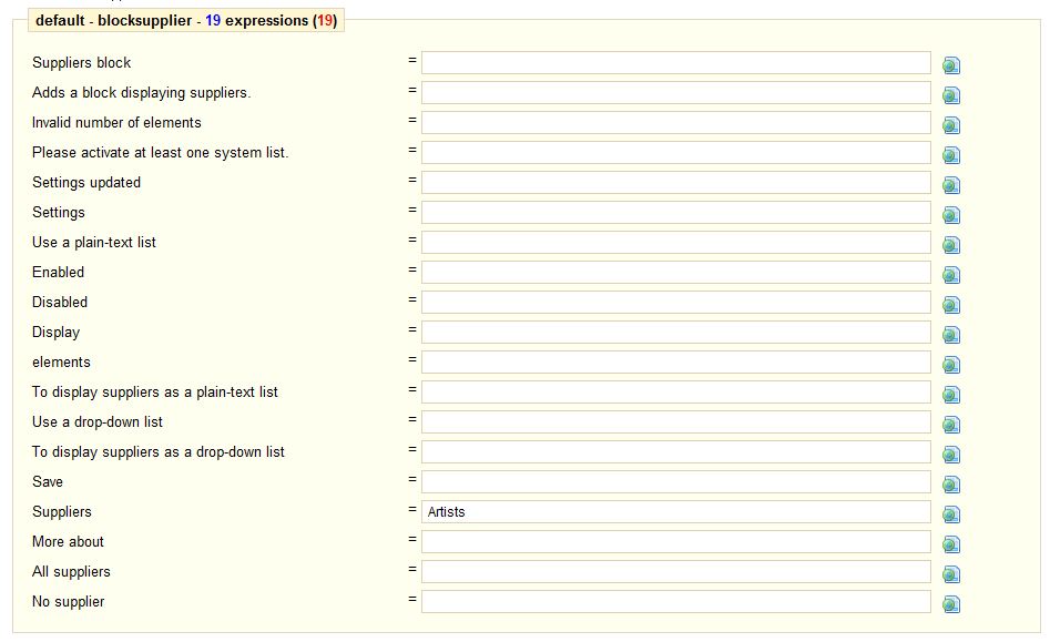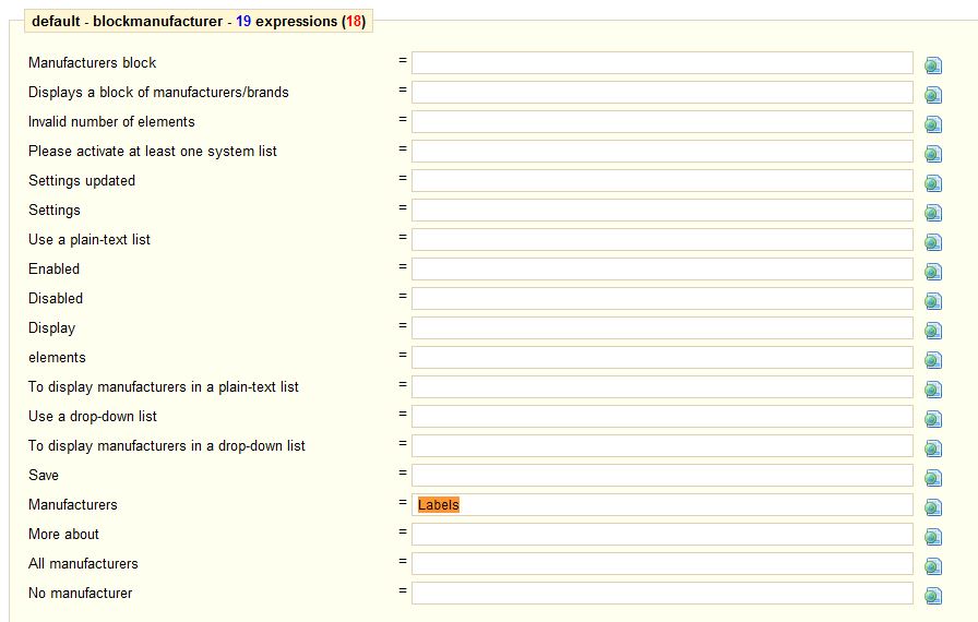 Mike Kranzler Posted November 4, 2011 Share Posted November 4, 2011 Hi festival-trade, Thanks for the images. You can change both of these in Tools > Translations > Module Translations in the "blockmanufacturer" section and the "blocksupplier" section. You can also edit any of that other text in these two sections as well. I hope this helps. -Mike Link to comment Share on other sites More sharing options...