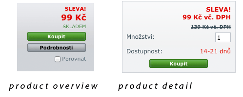 Defik Posted November 6, 2011 Share Posted November 6, 2011 Hi. I have a problem - who hasn't ) I have a product which is not on stock. 1) in the category listing is shown as "available" - thats wrong 2) At the product detail it shows corectly - not on stock You can see my problem in picture (as attachment). Picture translation: SKLADEM = on stock sleva = discount dostupnost = availability PrestaShop version: 1.4.5.1 Please help, how to fix availability in the category listing. Thanks a latte Link to comment Share on other sites More sharing options...