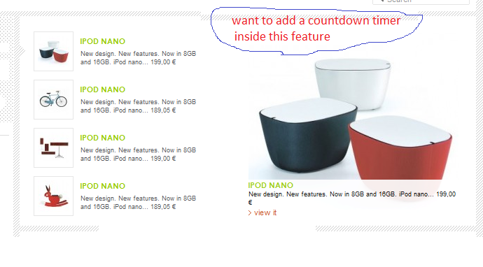 vince270 Posted November 9, 2011 Share Posted November 9, 2011 The element theme demo link is http://grainmagique.free.fr/element/ Hi guyz, I want to add a 24hrs countdown lock on the homefeatured to make as daily special deals. I used the code below to add on .tpl file but it didnot work. Please anyone, can help me with this problem. Thank you guys! Code: <script type="text/javascript"> var days = '{$remainingDay}'; var hours = '{$remainingHour}'; var minutes = '{$remainingMinutes}'; var seconds = '{$remainingSeconds}'; var ldays = '{l s='Days'}'; var lday = '{l s='Day'}'; {literal} <!-- function setCountDown() { seconds--; if (seconds < 0){ minutes--; seconds = 59 } if (minutes < 0){ hours--; minutes = 59 } if (hours < 0){ days--; hours = 23 } if (days < 1){ $("#remain").html(hours+":"+minutes+":"+seconds); } else { var d = (days > 1 ? ldays : lday ); $("#remain").html(days +" " + d + " "+hours+":"+minutes+":"+seconds); } setTimeout ("setCountDown()", 1000 ); } $(document).ready(function(){ setCountDown(); }); //--> {/literal} Link to comment Share on other sites More sharing options...