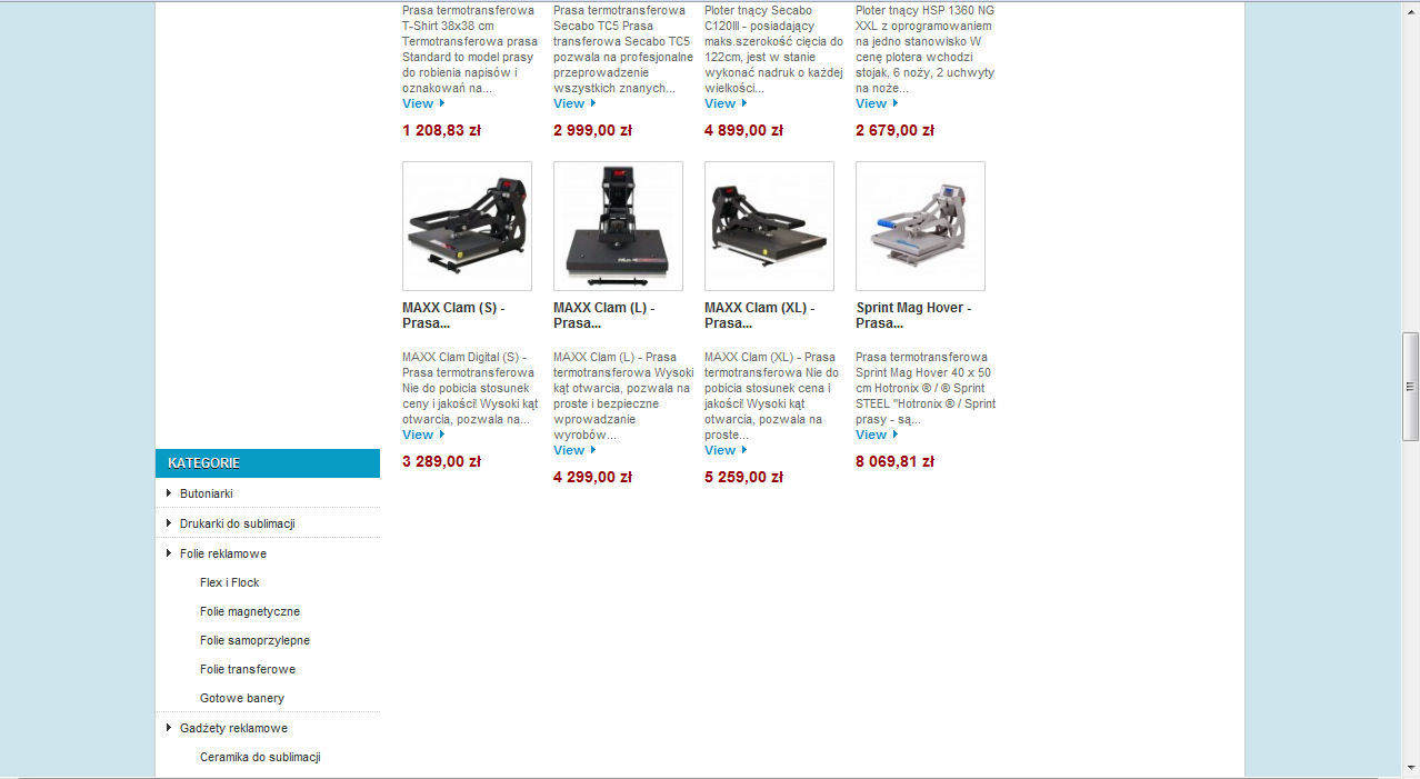 Ploter tnacy, Prasy transferowe, Prasa termotransferowa, Tamponiarki, Akcesoria,technika reklamowa,technika reklamy, rakle, rakla, folie, urządzenia - plotery tnące, plotery grawerujące, prasy termotransferowe, folie do ploterów, butoniarki, drukarki do sublimacji, kabiny do piaskowania, stojaki i akce