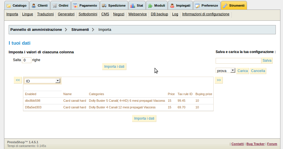 Francota Posted November 13, 2011 Share Posted November 13, 2011 Ciao MI hanno dato un file prova csv. Quando lo provo a importare ho il seguente problema. sapete quando bisogna associare il campo di ps al campo del file importato, bene mi esce solo un campo di ps disponibile da associare, sembra che non riconosca gli altri campi del file. Vi allego uno screen per essere più chiaro grazie spero in un vostro aiuto Link to comment Share on other sites More sharing options...