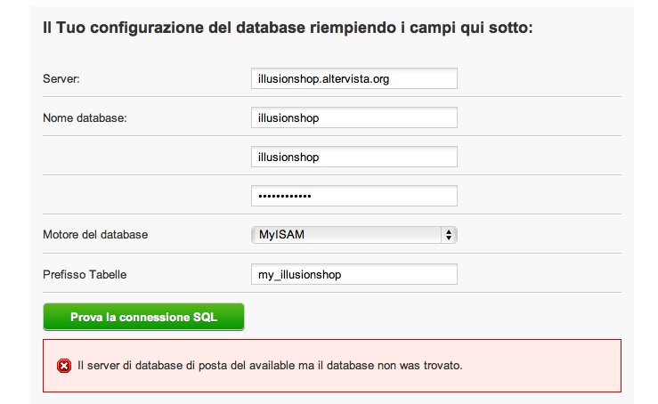 frenck23 Posted November 19, 2011 Share Posted November 19, 2011 Salve, andando ad insallare prestashop alla configurazione del databse mi dice che non lo trova, anche se io ho fatto tutto da altervista creando un databse livello 4 vi allego un immagine: Aiutatemi pls!! Link to comment Share on other sites More sharing options...