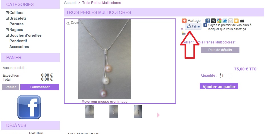 gillou75 Posted November 23, 2011 Author Share Posted November 23, 2011 Super, Merci pour les explications, c'est une version 1 4 4 1 Mais je n'ai rien touché sur le fichier product.tlp de mon théme Ci- dessous le code du product.tlp <!-- left infos--> <div id="pb-left-column"> {if $product->description_short OR $packItems|@count > 0} <div id="usefull_link_block"> {if $HOOK_EXTRA_LEFT}{$HOOK_EXTRA_LEFT}{/if} <a href="javascript:print();"><img src="{$img_dir}print.png" title="{l s='Print'}"></a> {if $have_image && !$jqZoomEnabled} <span id="view_full_size" class="span_link"><img src="{$img_dir}zoom.png" title="{l s='View full size'}" /></span> {/if} </div> <div id="short_description_block"> {if $product->description_short} <div id="short_description_content" class="rte align_justify">{$product->description_short}</div> {/if} {if $product->description} <p class="buttons_bottom_block"><a href="javascript:{ldelim}{rdelim}" class="button">{l s='More details'}</a></p> {/if} {if $packItems|@count > 0} <h3>{l s='Pack content'}</h3> {foreach from=$packItems item=packItem} <div class="pack_content"> {$packItem.pack_quantity} x <a href="{$link->getProductLink($packItem.id_product, $packItem.link_rewrite, $packItem.category)}">{$packItem.name|escape:'htmlall':'UTF-8'}</a> <p>{$packItem.description_short}</p> </div> {/foreach} {/if} </div> {/if} Ci- dessous le code du facebooklike.php <script type=text/javascript"> FB.Event.subscribe('edge.create', function(targetUrl) {ldelim} _gaq.push(['_trackSocial', 'facebook', 'like', targetUrl]); {rdelim}); FB.Event.subscribe('edge.create', function(targetUrl) {ldelim} _gaq.push(['_trackSocial', 'facebook', 'unlike', targetUrl]); {rdelim}); FB.Event.subscribe('edge.create', function(targetUrl) {ldelim} _gaq.push(['_trackSocial', 'facebook', 'send', targetUrl]); {rdelim}); </script> {if $fl_default_hook} <li> {else} {* If you're using a custom hook, you can customize the following div with the style you want. If the share / send box appear cut off, add position: absolute to the style*} <div class="facebook_container"> {/if} <div> <fb:like send="{$fl_send}" show_faces="{$fl_faces}" layout="{$fl_layout}" width="{$fl_width}" font="{$fl_font}" action="{$fl_text}" colorscheme="{$fl_color}"></fb:like> </div> {if $fl_default_hook} </li> {else} </div> {/if} {* Old method <iframe src="http://www.facebook.com/plugins/like.php?href=&layout={$fl_layout}&show_faces=&width={$fl_width}&font={$fl_font}&action={$fl_text}&colorscheme={$fl_color}&height={$fl_height}" scrolling="no" frameborder="0" style="border:none; overflow:hidden; width:{$fl_width}px; height:{$fl_height}px;" allowTransparency="true"></iframe>*} Link to comment Share on other sites More sharing options...