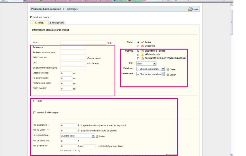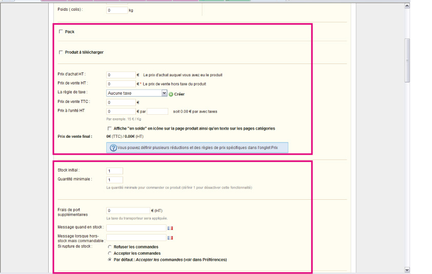 Comment supprimer tous ces champs, concernant prix, fournisseur,stock, frais de port,