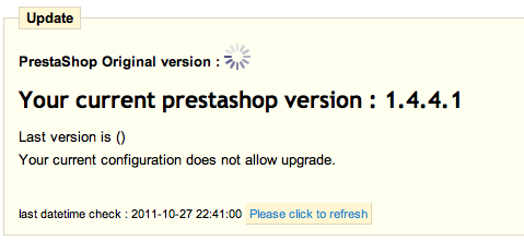 ifontal Posted November 28, 2011 Share Posted November 28, 2011 [....] The two upgraded shops now display in the autoupgrade tab as follows (I annotated red highlight): --------------shop # 1 that used SVN files for upgrade--------------------------------------------- PrestaShop Original version : [TECHNICAL ERROR] Unable to check md5 files Your current prestashop version : 1.4.6.2 Last version is 1.4.6.2 final (1.4.6.2) Your shop is already up to date. last datetime check : 2011-11-27 18:04:05 [.....] That's my problem, but I used the official release, not svn. Link to comment Share on other sites More sharing options...