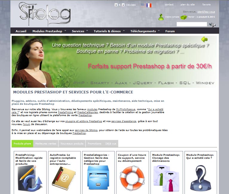 Si vous connaissez MyPhotoRescue, mon site commercialisant des services de retouche et de restauration de vieilles photos, c'est sans doute avant tout au travers de sa petite section de vente de nos modules et applicatifs pour Prestashop. Cette activité prenant de l'ampleur, il était normal de lui dédier son propre site, Sitolog.