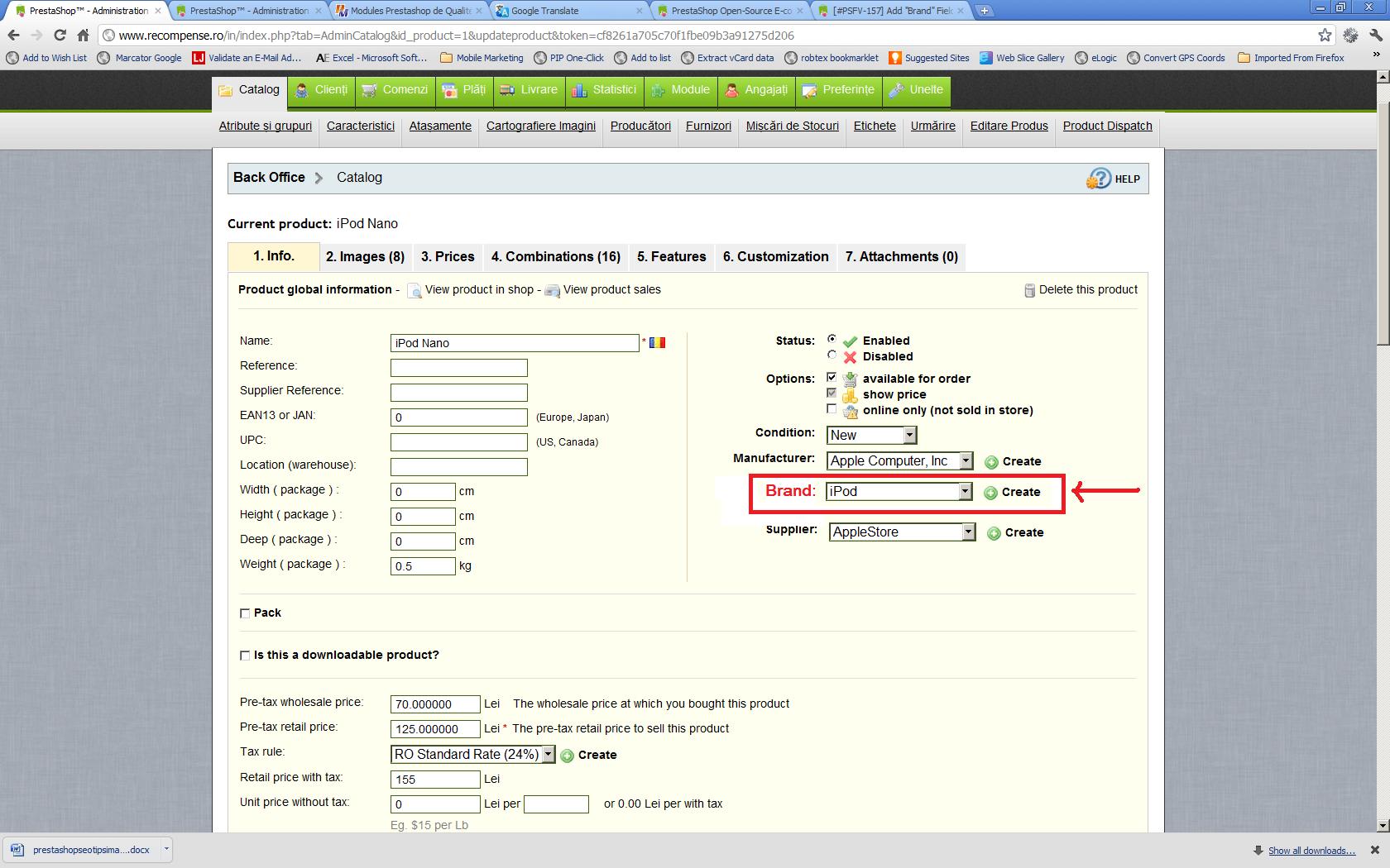 A. field BRAND inserted in Catalog > Products > Info Page on the right side just between Manufacturer and Supplier ? ( picture product_fields_brand.jpg )