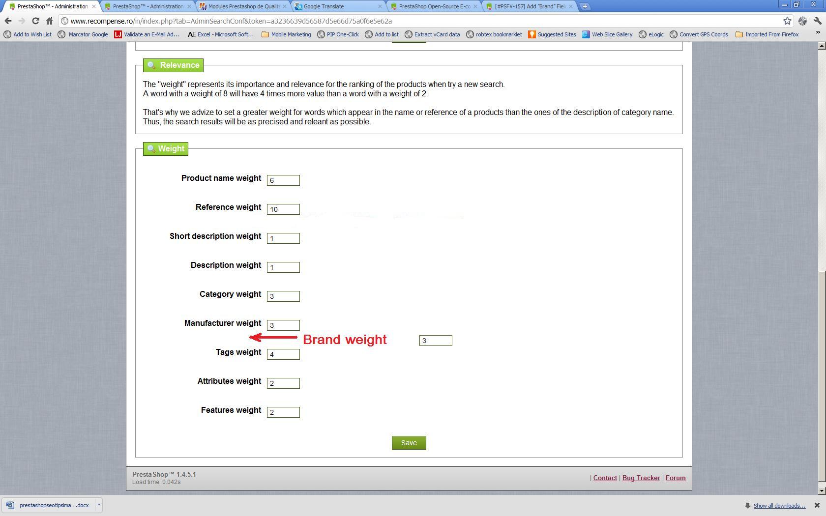B. field BRAND inserted in Preferences > Search > Relevance Weight to be searchable with relevancy settings ( picture search_fields_brand.jpg )