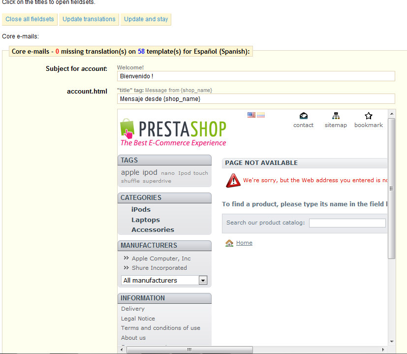 El Patron Posted November 29, 2011 Share Posted November 29, 2011 Server information Prestashop version: 1.4.5.1 Server information: Linux #1 SMP Fri Jun 3 00:02:40 MSD 2011 i686 Server software version: Apache/2.2.3 (CentOS) PHP version: 5.3.8 MySQL version: 5.0.77 I need to change one of the Core emails the (template).html all display as if the page does not exist. I then click 'edit this mail template' and I see: When I click 'update and stay' the page gets re-directed to the front office, 404 error, and looks just like the original .html display in the first image. I will change the email via dw and ftp up, but it sure would be nice if this worked. And honestly this is the first problem (other than my own lack of understanding) of this great product. Thank you in advance for any help or suggestions on how to make the email html work. Link to comment Share on other sites More sharing options...
