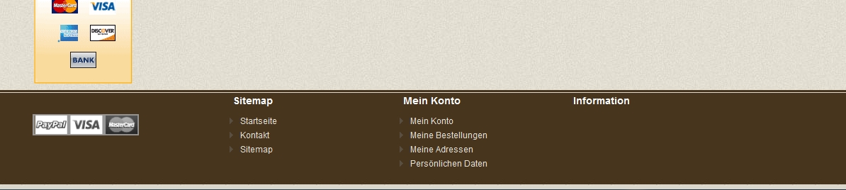 dtoenies Posted November 30, 2011 Share Posted November 30, 2011 Hallo zusammen, in meiner Footer-Zeile stehen von Anfang an die unten abgebildeten Werte. Allerdings habe ich mir das so gedacht und bekomme es nicht hin: Ich habe Unterkategirien hinzugefügt und dort Seiten eingerichtet. Nun möchte ich das diese Unterkategorien in Fett erscheinen und die Seiten darunter als direkte Verlinkung. Mit dem Modul BlockCMS habe ich es nicht wirklich hinbekommen. Könnte mir da jemand weiterhelfen? Vielen Dank schonmal! Link to comment Share on other sites More sharing options...