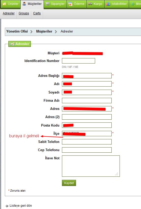 glsnkb Posted December 11, 2011 Author Share Posted December 11, 2011 Ben state'leri il citiy'leri de ilçe olarak çevirdim. Bu yüzden sipariş formlarımda, üye girişinde veya üye olurken adres girmede hiçbir sorunum yok. Yani web sitemde hepsi görünüyor. Sadece yönetim panelinde müşteriler-adreslere baktığımda il yani state görünmüyor.(fotodaki gibi) Siparişlerime girdiğimde görünüyor ama. Address Layout ile bir çok şey denedim ama hiçbir yere etkisi olduğunu görmedim.ayrıca eski versiyonlarda da bu adres görünümü vardı amam değiştirdiğimde hiç farkmetiyordu.Layout'ım aşağıdaki gibi. firstname lastname company vat_number address1 address2 postcode State:name city phone Link to comment Share on other sites More sharing options...