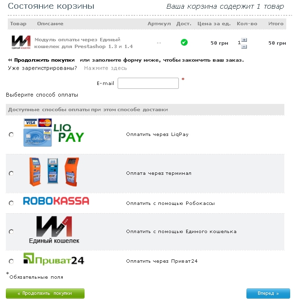 Rezonans Posted December 4, 2011 Share Posted December 4, 2011 Русский, рабочий модуль оформления заказа на одной странице, который автоматически определяет, какого типа товар, цифровой или физический и соответственно просит ввести или только имейл, или поля адреса доставки. После заказа автоматически создается виртуальный аккаунт, в котором человек сразу, автоматически залогинен, и после, если он захочет, то может изменить эти данные на свои. Посмотреть в работе модуль можно здесь: http://rinok.biz/pro...id_product=5387 Нажите "Добавить в корзину", а потом - "Оформить" и появится страница модуля. 1 Link to comment Share on other sites More sharing options...
