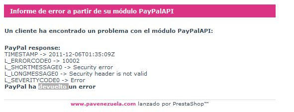 jesusruiz Posted December 6, 2011 Share Posted December 6, 2011 Desactiva la memoria Caché: Backoffice -> Preferencias - Rendimiento Forzar compilacion: Sí (solo para actualizar, despues desactivalo) Cache: No. Vuelve a reiniciar el modulo Paypal, introduce de nuevo los datos y debería funcionarte. Un saludo. Link to comment Share on other sites More sharing options...