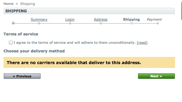 How can I simply have the buyer get past the shipping screen in the order process if there's no shipper specified except our store as a default and therefore, he'd have to contact us to establish a method of shipping?