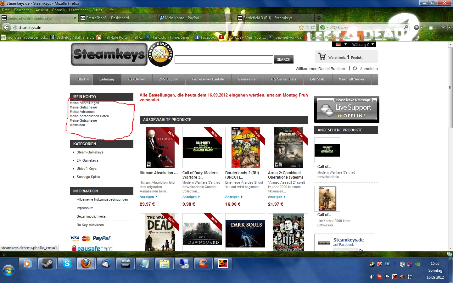 PhShop2012 Posted January 13, 2012 Share Posted January 13, 2012 Habe das PayPal Testprodukt nochmal verfügbar geschalten, der Fehler hat aber wohl nichts mit PayPal zu tun, es ist noch das große Fragezeichen auf der Bestellseite: http://www.flickr.com/photos/74124011@N02/6683624969/in/photostream Link to comment Share on other sites More sharing options...