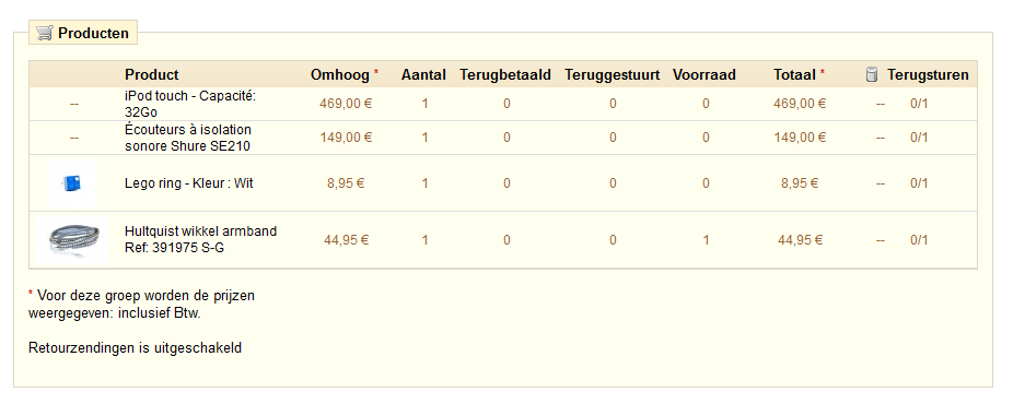 Nickless Posted December 11, 2011 Share Posted December 11, 2011 <SOLVED> Hi all, I've got a strange problem going on and I really hope someone can help me out! When a client makes an order, there are products inluded in that order that the client did not select. The total amount of the order is just the product that he did select but for some reason other products are being added. I've tested it myself making a test order and during the order I don't see anny other product beeing added. But in my backoffice I do see other products. Also, when I look at the client invoice, the other not ordered product are vissible. I did several test orders and the products that are added seem totally random. But there are allways one or two not ordered product added. I've added a screenshot from my backoffice. Only the last product was really ordered. I'm using Prestashop 1.4.4.1. All help welcome!! regards -Dave Link to comment Share on other sites More sharing options...