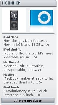 zapatronen Posted December 19, 2011 Author Share Posted December 19, 2011 <!-- MODULE Block new products --> <div id="new-products_block_right" class="block products_block"> <h4><a href="http://tm/prestashop/new-products.php" title="Новые поступления">Новые поступления</a></h4> <div class="block_content"> <ul class="product_images clearfix"> <li class="first"><a href="http://tm/prestashop/product.php?id_product=1" title="iPod Nano"><img src="http://tm/prestashop/img/p/3/7/37-medium.jpg" height="80" width="80" alt="iPod Nano" /></a></li> <li><a href="http://tm/prestashop/product.php?id_product=2" title="iPod shuffle"><img src="http://tm/prestashop/img/p/2-46-medium.jpg" height="80" width="80" alt="iPod shuffle" /></a></li> </ul> <dl class="products"> <dt class="first_item"><a href="http://tm/prestashop/product.php?id_product=1" title="iPod Nano">iPod Nano</a></dt> <dd class="first_item"><a href="http://tm/prestashop/product.php?id_product=1">New design. New features. Now in 8GB and 16GB. iPod nano rocks like...</a><br /><a href="http://tm/prestashop/product.php?id_product=1" class="lnk_more">En savoir plus</a></dd> <dt class="item"><a href="http://tm/prestashop/product.php?id_product=2" title="iPod shuffle">iPod shuffle</a></dt> <dd class="item"><a href="http://tm/prestashop/product.php?id_product=2">iPod shuffle, the world’s most wearable music player, now clips on in...</a><br /><a href="http://tm/prestashop/product.php?id_product=2" class="lnk_more">En savoir plus</a></dd> <dt class="item"><a href="http://tm/prestashop/product.php?id_product=5" title="MacBook Air">MacBook Air</a></dt> <dd class="item"><a href="http://tm/prestashop/product.php?id_product=5">MacBook Air is ultrathin, ultraportable, and ultra unlike anything else....</a><br /><a href="http://tm/prestashop/product.php?id_product=5" class="lnk_more">En savoir plus</a></dd> <dt class="item"><a href="http://tm/prestashop/product.php?id_product=6" title="MacBook">MacBook</a></dt> <dd class="item"><a href="http://tm/prestashop/product.php?id_product=6">MacBook makes it easy to hit the road thanks to its tough polycarbonate...</a><br /><a href="http://tm/prestashop/product.php?id_product=6" class="lnk_more">En savoir plus</a></dd> <dt class="last_item"><a href="http://tm/prestashop/product.php?id_product=7" title="iPod touch">iPod touch</a></dt> <dd class="last_item"><a href="http://tm/prestashop/product.php?id_product=7"> Revolutionary Multi-Touch interface 3.5-inch widescreen color display...</a><br /><a href="http://tm/prestashop/product.php?id_product=7" class="lnk_more">En savoir plus</a></dd> </dl> <p><a href="http://tm/prestashop/new-products.php" title="Все новые товары" class="button_large">» Все новые товары</a></p> </div> </div> <!-- /MODULE Block new products --> Link to comment Share on other sites More sharing options...