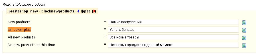 Ronaldo Perez Posted December 17, 2011 Share Posted December 17, 2011 да, зайди в modules/blocknewproducts, там tpl файл - открой, ctrl + f и поиск по фразе En savoir plus если фраза будет вложена в конструкцию вида {l s='En savoir plus' mod='blocknewproducts'} - то все должно переводиться через админку в переводе модулей, и значит таки где-то работает кэш или что-то в этом духе, если вставлена просто фраза, без вышеуказанной конструкции - значит кто-то кривыми руками ковырял модуль) и надо привести его в первоначальный вид Link to comment Share on other sites More sharing options...